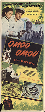 |  | | U.S. Insert 14" x 36" tall - B-condition it's just old and there's a bottom corner missing. | Primitive Emotions! Wild Dangers! Another Exciting Adventure Romance... by the Author of Moby Dick - OMOO OMOO (The Shark God) - with Ron Randell 1949 | $130.00 | MP0195 | |