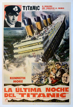 |  | | Spanish 1-sheet 29" x 43 1/2" tall - Lenin-backed - A condition | TITANIC El Desastre Que Conmovio Al Mundo Kenneth More LA ULTIMA NOCHE DEL TITANIC (A Night to Remember) - 1958 | $450.00 | MP1841 | B |