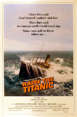 |  | | US 1 sheet 27" x 40 1/2" tall - A condition - rolled | Once they said God himself couldn't sink her. Then they said no man on earth could reach her. Now - you will be there when... RAISE THE TITANIC - Loard Grade presents RAISE THE TITANIC | $100.00 | MP1853 | B |