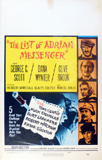 |  | Window Card 14x22 | | THE LIST OF ADRIAN MESSENGER starring George C. Scott, Dana Wynter, Clive Brook - A John Houston Film - A Universal Release 1963 | $100.00 | MP2295 | A |