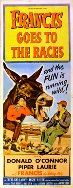 |  | | U.S. Insert 14" x 36" tall - B condition folded | "FRANCIS GOES TO THE RACES"... and the FUN is running wild! starring Donald O'Connor, Piper Laurie 1951 | $70.00 | MP3707 | |