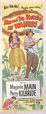 |  | | U.S.Insert 14" x 36" tall - B condition folded | Alo-Ha-Ha!... they've gone native! "MA AND PA KETTLE AT WAIKIKI" - A Universal-International Picture 1955 | $150.00 | MP3692 | B |