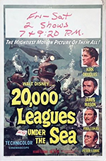 |  | | US Half-sheet/Lobby 22" x 28" wide - Linen-back | Walt Disney Presents 20,000 LEAGUES UNDER THE SEA starring Kirk Douglas, James Mason, Paul Lukas, Peter Lorre - Technicolor Based on the Famous Jules Verne Novel Cinemascope 1955 | $1,200.00 | MP0204 | |