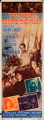 |  | | U.S.Insert 14" x 36" tall - C+ condition folded | "TWO YEARS BEFORE THE MAST" starring Alan Ladd - A Paramount Picture 1945 | $150.00 | MP0276 | B |