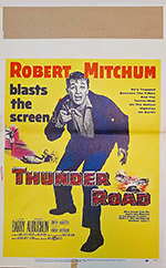 |  | | 22" x 28" wide Lobby - folded but been flat for 5 years - B condition | ROBERT MITCHUM in THUNDER ROAD - United Artists 1957 | $450.00 | MP2142 | B |