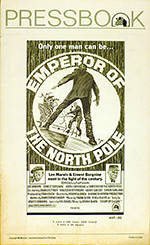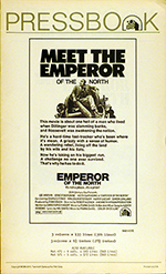 |  | | U.S. Pressbook 8 1/2" x 14" tall with 10 pages UNCUT in good used condition | pressbook from the 1973 film 20th Century-Fox Presents Lee Marvin, Ernest Borgnine in "EMPEROR OF THE NORTH" - 20th Century-Fox 1973. | $100.00 | MP2126 | B |